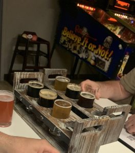 Meanwhile on the non-flight side of the table, Jason was drinking the Thirsty Dog Blood Orange and Cassi had the dry cider – before eventually switching to White Claw.