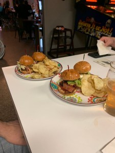 But really it’s only because I don’t think they were offered on the menu at all, so that could be a technicality. Regardless, tonight’s table specialties were sliders and chips. Well, and Jason’s pizza.