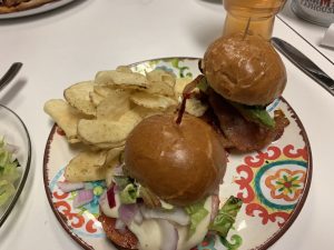 Cassi got two of the Italian sliders, paired with the sour cream and chive chips.