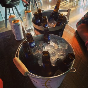 Also, you’ll notice they didn’t share a bucket. They each got their own. So five beers each, on top of the ones they had ordered in the first round.