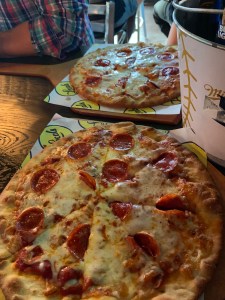 And by share I mean just for two people to share, not five – so we ended up with two giant pizzas on our table just for appetizers, as well as one order of fried pickles for Ted.