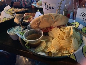 Aside from the fun game of rationing out our drinks and taking bets on when we thought we might actually see our server the next time, our entertainment for the evening was a guy singing beach music in the opposite corner of the patio. Well, at least we think that’s what he was singing anyway. It was probably the only time ever that the music volume was more like background noise and less like something we had to scream over to be heard at our own table.