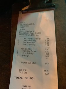 The flatbread was probably the best part of the meal. The crust was good, it had decent flavor, and it was served nice and hot with melted cheese – which may have been the one and only reason Ted was happy he had those fried pickles, in whatever iteration they were served.