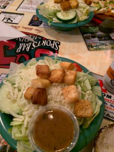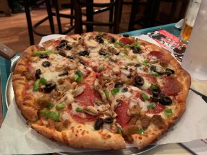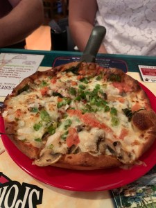 Cassi’s choice was the Veggie Pizza, with a side salad. She took one bite and gave it an “F” grade, victim of the dreaded mushy bottom. She said the toppings were good, but the crust killed it for her. And it was nothing like Tim’s, which is the standard by which all pizzas in her world will now be judged.