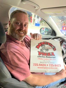 (We forgot to take our photos at the restaurant before we left, so thankfully Ted was making a stop for gas at the GetGo down the street. You’re welcome to the other drivers who got to witness our seemingly random photo session with the pizza box)