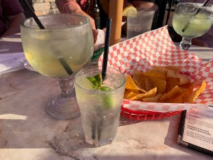 But then about 10 minutes later some guy who wasn’t our server arrived with a package of fajitas to hand to me. Not wanting to be wasteful, I said thanks anyway but actually I’ll skip the fajitas, and can you just bring over some more salsa instead? He said sure … and then disappeared into the Bermuda Triangle of the restaurant, never to be seen again. Maybe he got called oto that Mexico charter for more tequila? Who knows.