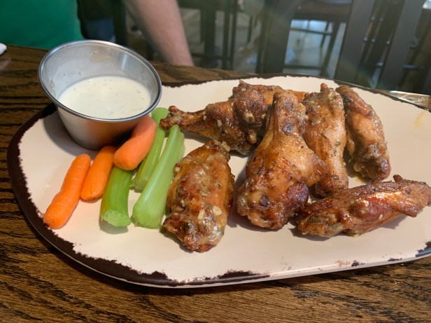 Meanwhile the guys took the wings suggestion to heart – well, and the Wednesday night special didn’t hurt either. Shane got an order of the garlic and an order of the Sweet Memphis dry rub, while Ted got garlic butter.
