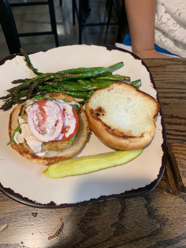 She was also a good sales person. Cassi has barely asked her what she recommended when the words “crab cake sandwich” exited her mouth – which the server didn’t know was the main item in the menu that Cassi had been considering. Her affinity for it was enough to make Cassi’s decision easier than sweating on a 100% humidity day.