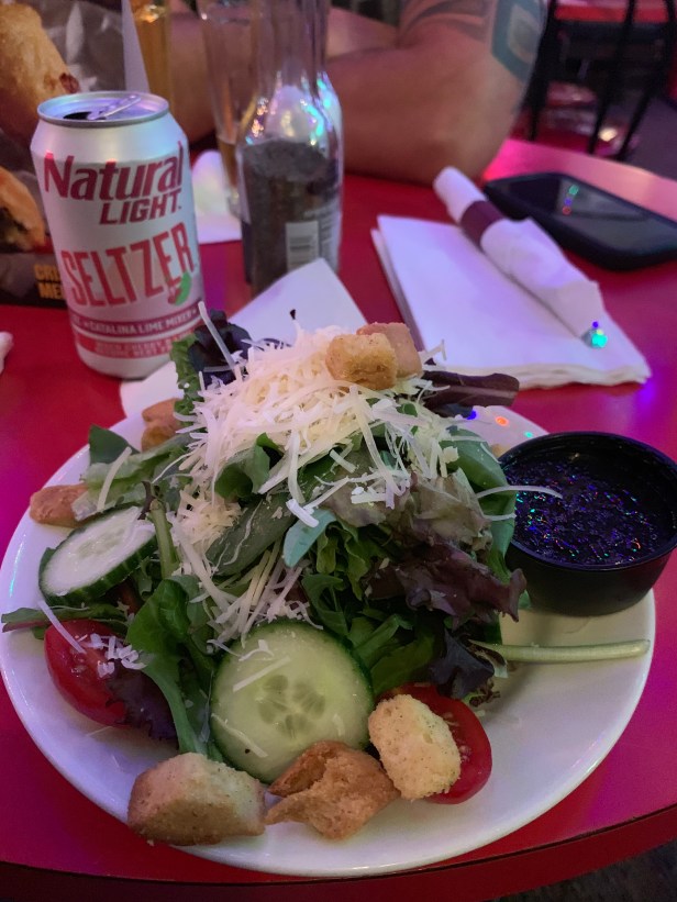 Also while they did have Black Cherry White Claw, we opted for the Natural Light hard seltzer – because who doesn’t feel classy drinking a form of Natty Light at a place where the evening’s dinner special is salmon?