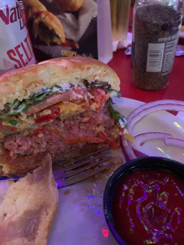 So I ordered my burger cooked medium, and was served one that was very much looking like it was the color of the inside of a grapefruit. Hmm. I’ve seen those color charts on the chain steakhouse menu that basically depict “grilling colors for dummies,” and that doesn’t seem to match up. Might’ve wanted to leave that one on the grill a bit longer there, chief.