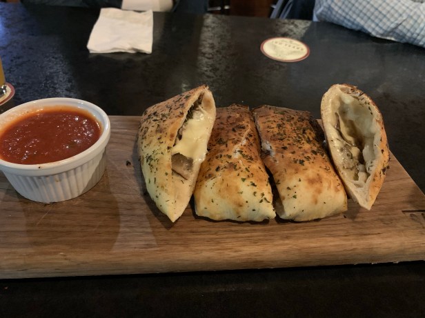 So overall, taste-wise, everything was good. The flavors in the pizza and the calzone were both delicious. The dough especially was amazing, and you could tell it’s all fresh made – even without the note in the menu mentioning the lack of freezers or fryers in the back kitchen. In fact, if all four pieces could’ve been as doughy as the end two slices I might not have been able to hold myself back from eating the whole thing and getting rolled out the back door to the parking lot.