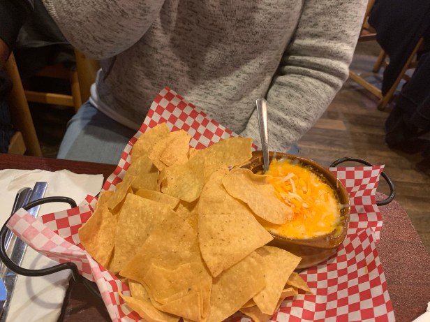 Cassi and Jason got something called Gator Tots, which may or may not have had actually fried alligator on them or just been named for the theme. I forgot to ask. But they did include beans, a little fact that Cassi missed in the description and was not entirely thrilled about. But fortunately they also got the buffalo cheese dip, which definitely did not include alligator or beans.