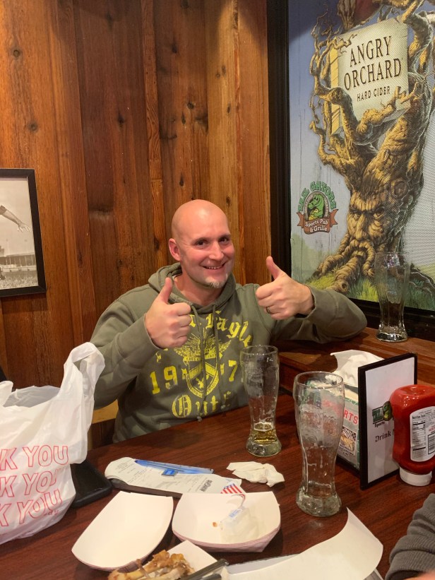 Shane ate about half of his wings and then decided to save the rest for a take home bag and start on his sandwich. But then he ended up taking half of that home too. Not because it wasn’t good, but because he said he was just too full.
