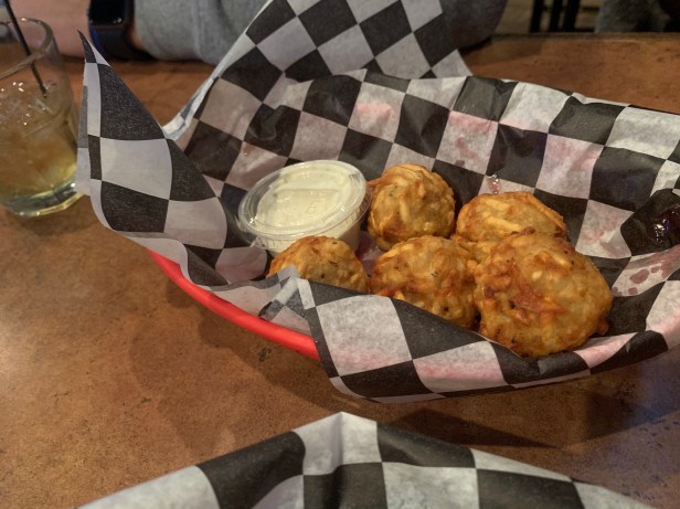 Cassi and Jason opted for something called the Hushpuckers. Which in case you don’t speak “pucker,” are shredded potato bites covered with bacon ranch dressing.