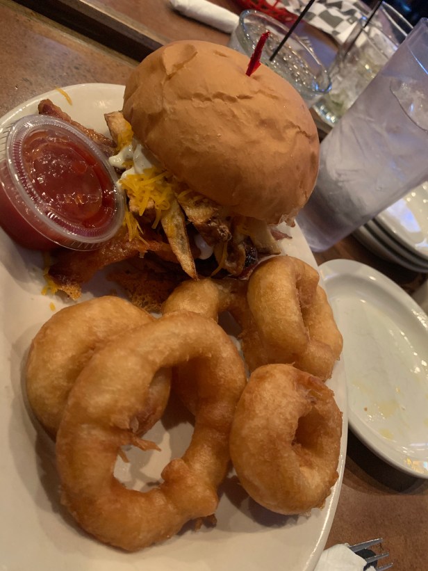 Shane got the Viking burger – a patty adorned with bacon, cheddar cheese and french fries – and a side of onion rings. Because, you know, the fries are already on the sandwich, no use getting more of those.