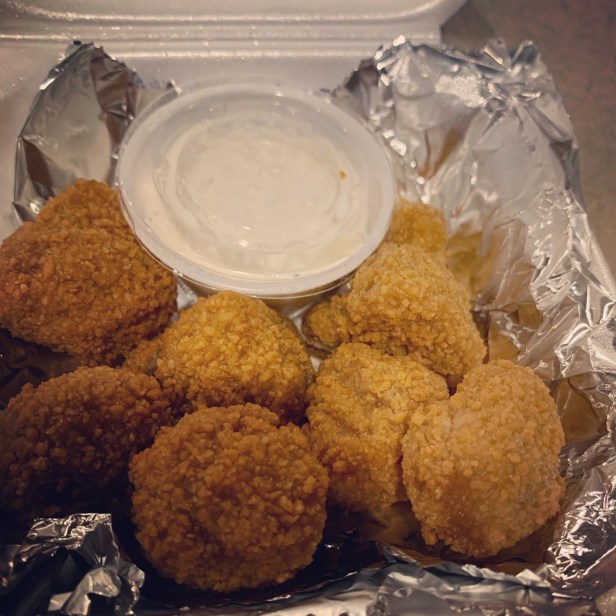 But less for the reasoning of the sheer amount of food we brought back into the house, and more so because, well … while those are both items I’m pretty sure we’ve ordered from Tim’s before, this time around they just weren’t that impressive. There wasn’t a ton of flavor on either of them. And the breading on the mushrooms slid off faster than butter on a hot roll. Like, we learned our lesson early on about popping a breaded mushroom into your mouth to devour all in one bite (unless you’re a fan of completely losing the skin on the roof of your mouth in about two seconds flat, which we are not), but in this case when we tried to just eat part of it a one time we were left with a hot mushroom and a pile of bready goo in our hand. And that’s not a good look for anyone.