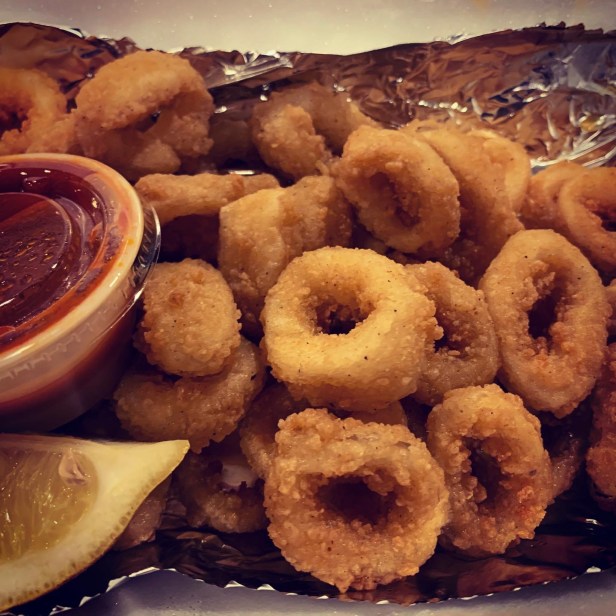 We also got appetizers, because clearly like 20+ slices of pizza aren’t enough for just two people, but also more so because life just isn’t complete without fried foods. We chose the calamari and breaded mushrooms.