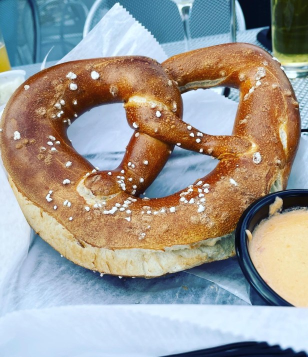 We’ll call this photo the visual version of those pesky beer descriptions. Because I’ll admit when looking at this picture, I feel like this pretzel should be delicious. It looks doughy and salty and like you’re going to dig in and get a little buttery pillow of dough with a crispy outside.