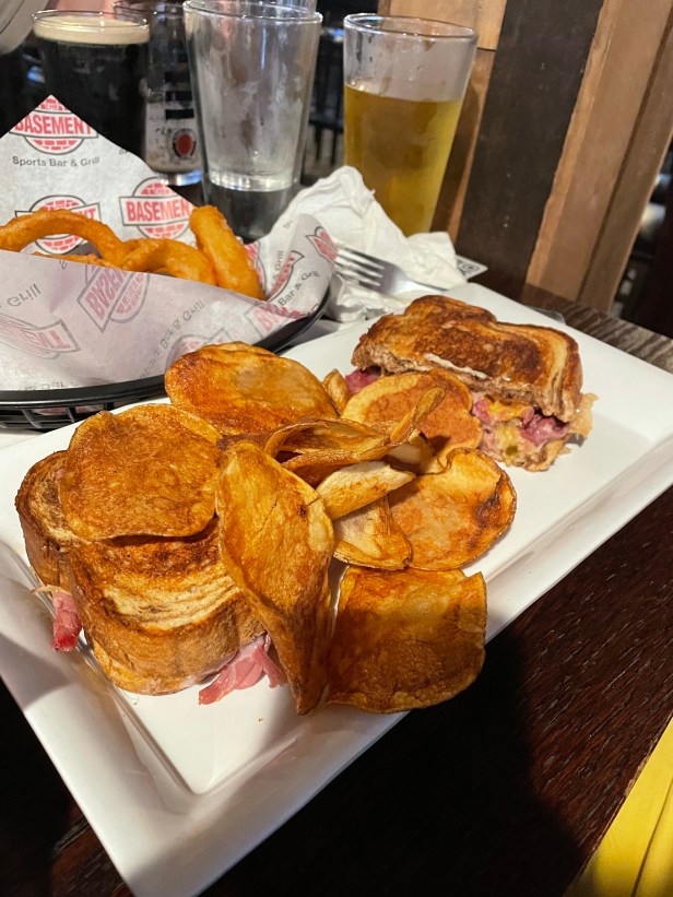 Shane got the ultimate Reuben. He commented that he thinks he’s ordered that sandwich every time he’s been to the Basement – except of course when he orders wings. But since you pretty have to take out a small loan just to eat wings on the regular anymore – who had “wings as a luxury item” on the 2021 Bingo board? – a Reuben it was.
