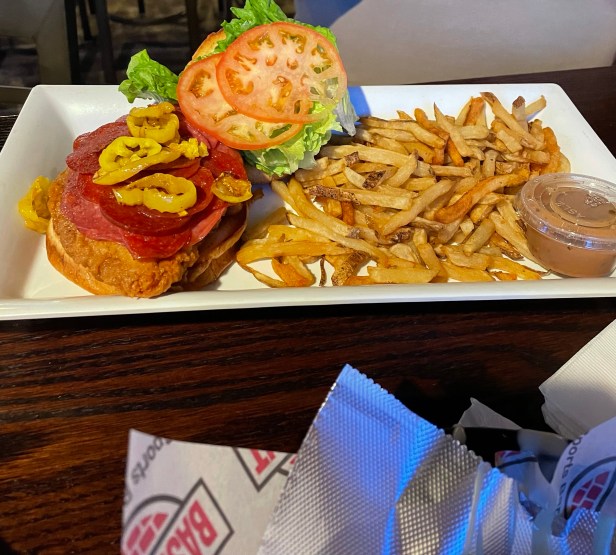 Fortunately Ted’s sandwich made up for his app. He got the Pianso chicken sandwich. Which he had to point to on the menu because the server taking our order didn’t recognize the name of. Always a good sign, no?