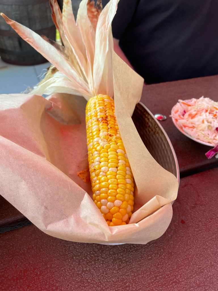 But while he loves this particular dish, it’s also not exactly a substantial amount of food as a standalone meal option. So he also ordered sides of the street corn and cole slaw.
