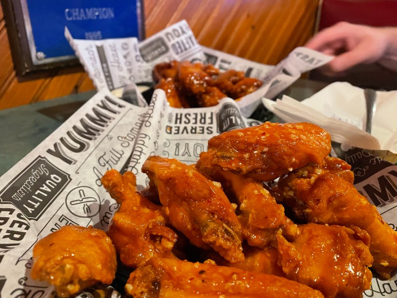 Our server told us that the wing special is only good with a minimum order of ten wings. OK, twist our arms. I feel like we’ve ordered stranger things just to get a deal on chicken wings, but whatever.