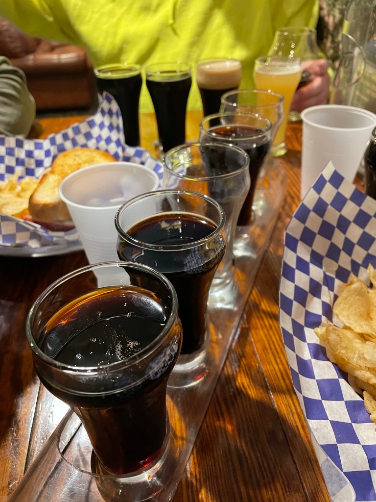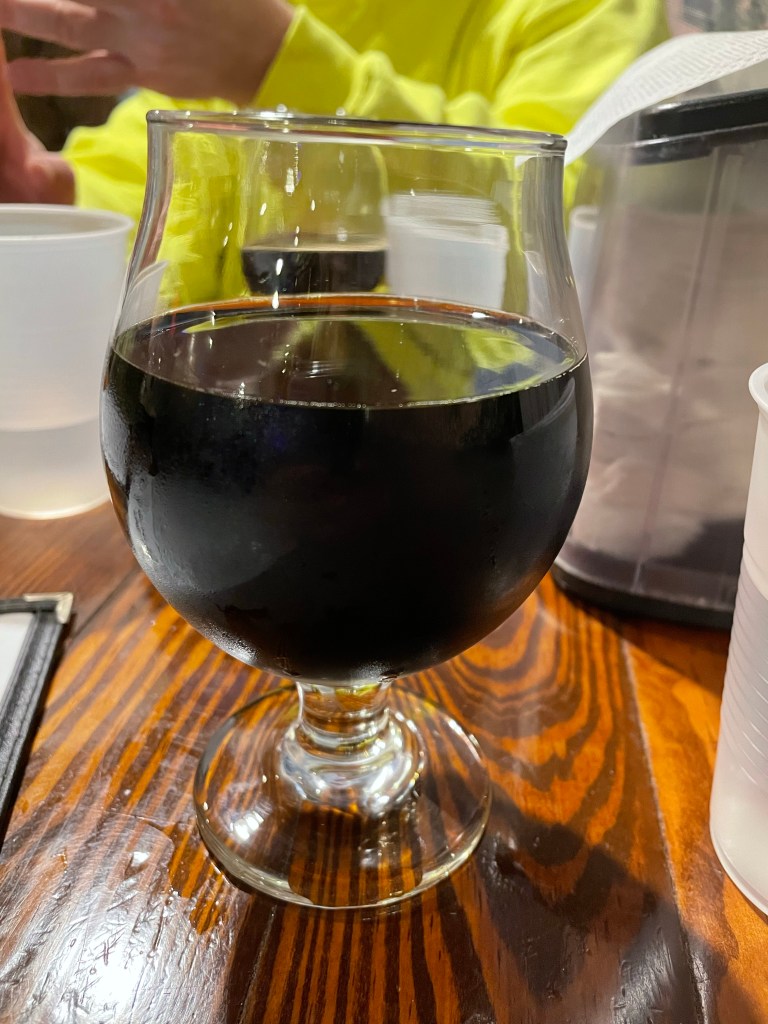 Instead we settled for one sip of Ted’s delicious beer, just to confirm that yep, we really would’ve enjoyed a whole glass of that. Then I got a glass of the Snicker Dude, and Shane got the Peppermint Milk Stout Nitro.