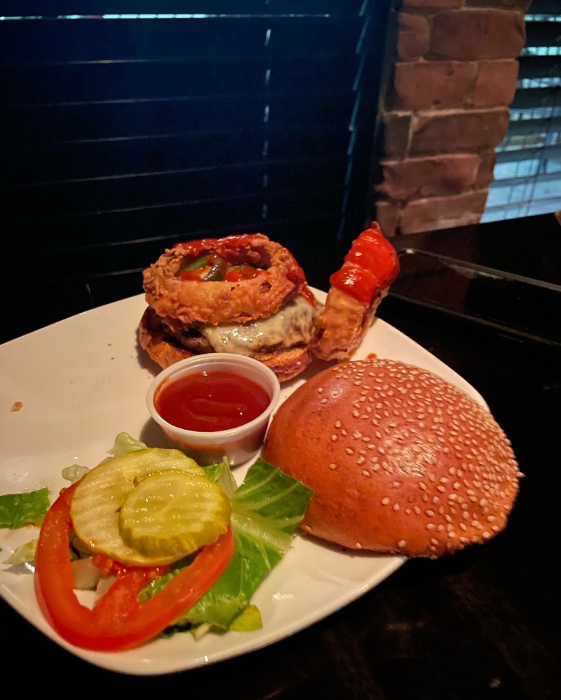 The burger also comes with some spicy sauce that after left his mouth on fire for a good 20 minutes after the first bite.