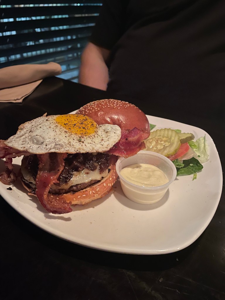 For food, Ted got the Shawn’s burger, which is distinguished but the fact that it has a fried egg on it.