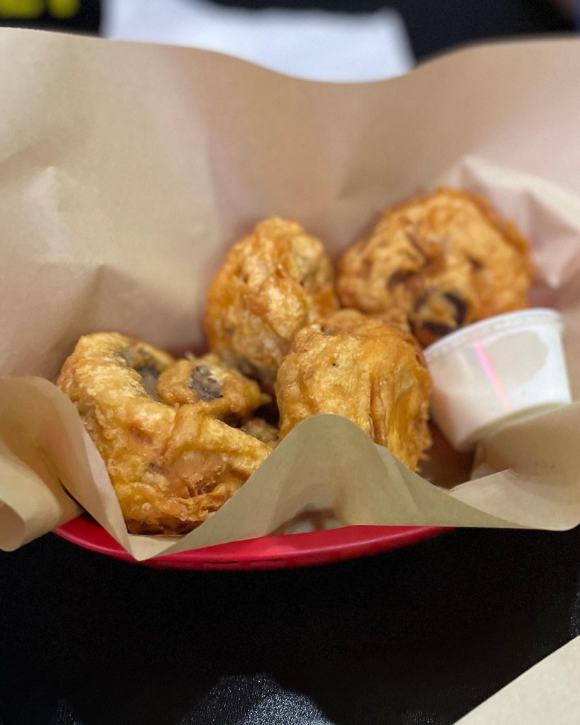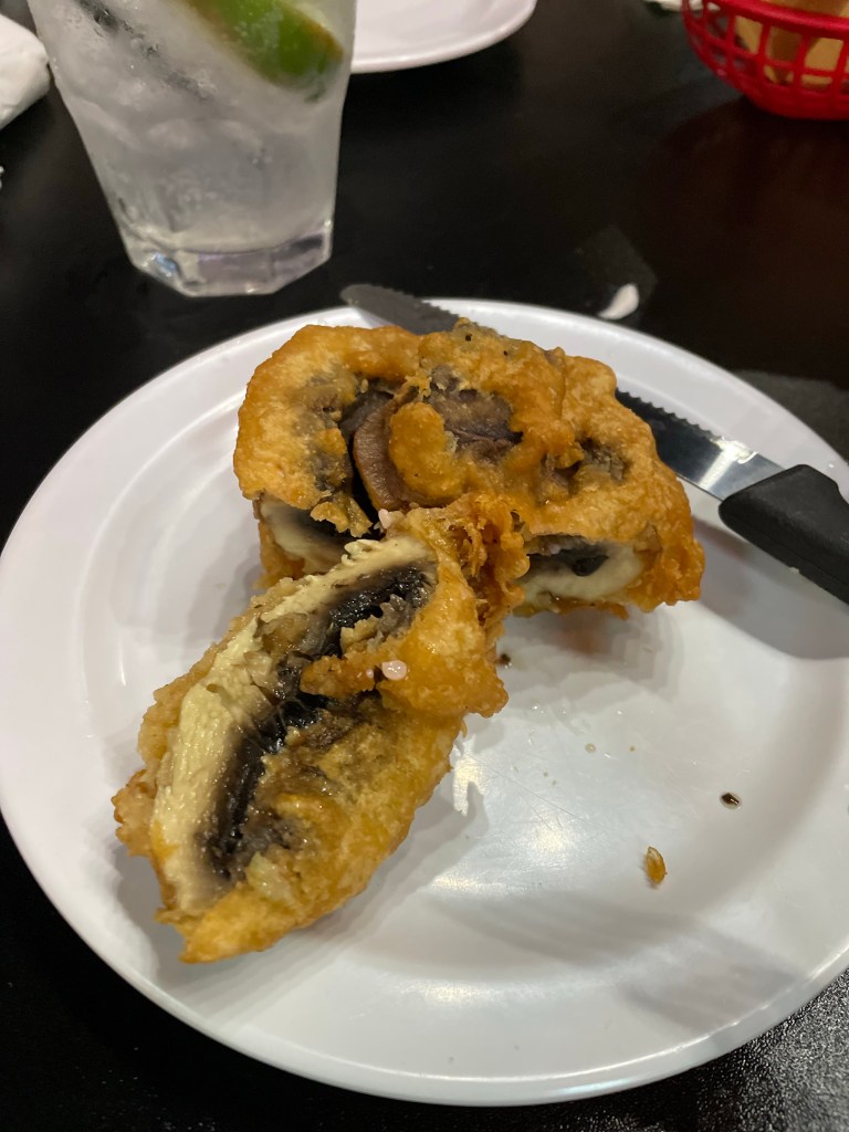 And fried mushrooms. Which were so huge they were almost a meal all in themselves. There’s four in the basket, which I think we were visibly disappointed at first noticing, but then when we dug in and realized they’re each about the size of our burgers we felt redeemed.