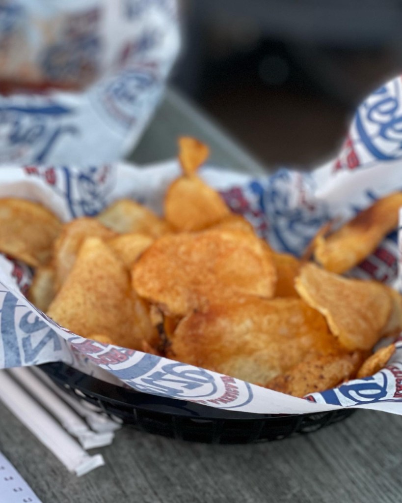 The side order for both sandwiches was the house made chips, which came out last since they made them fresh as we ordered them. Which means for Shane they were the last items he could eat, because they were about as hot as the inside of a pizza oven then they came to our table.