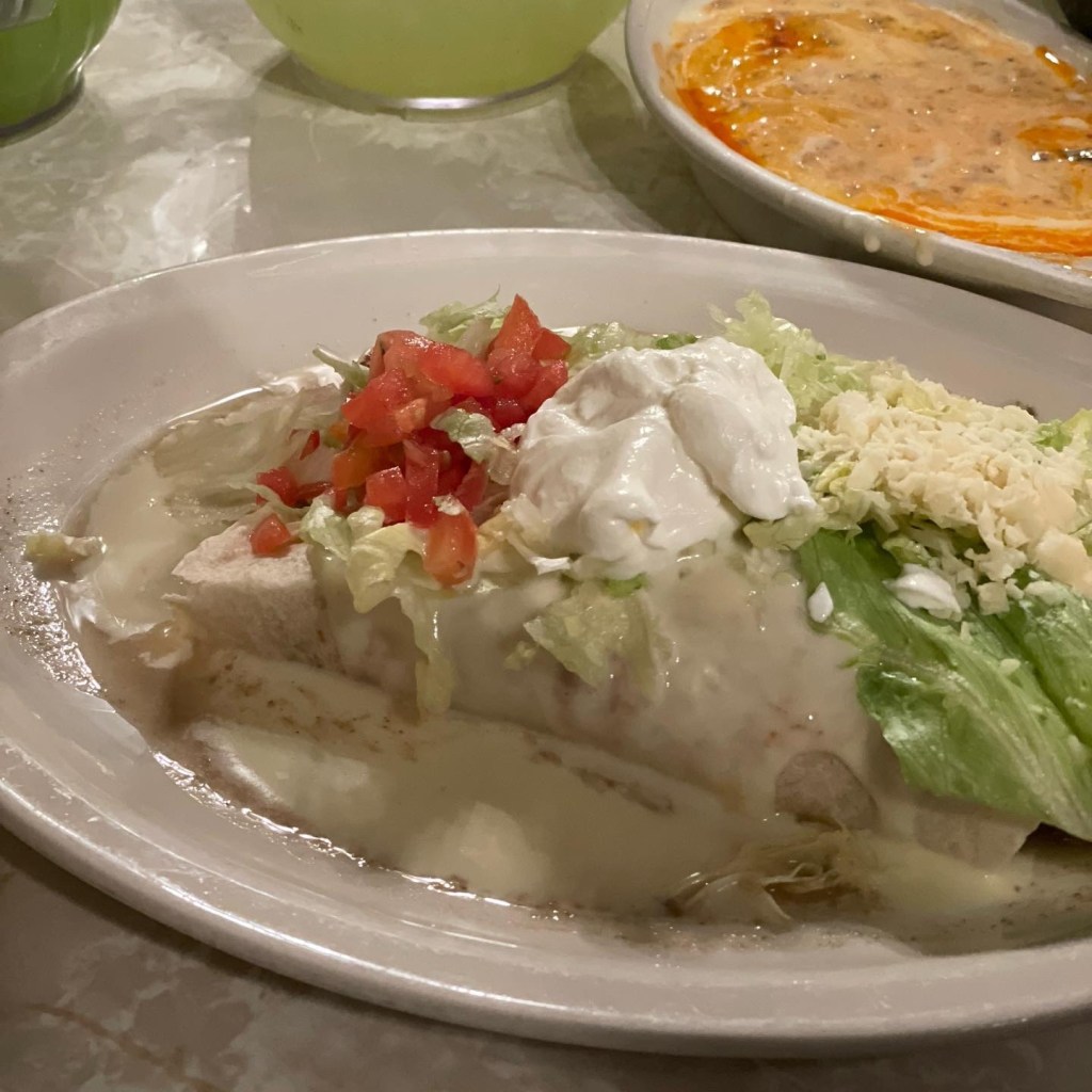 Shane liked his meal. He said it was about the same as any other Mexican place we’ve gone to, but it didn’t suck so that counts for something. And, of course, the greasy cheese dip made his evening too.
