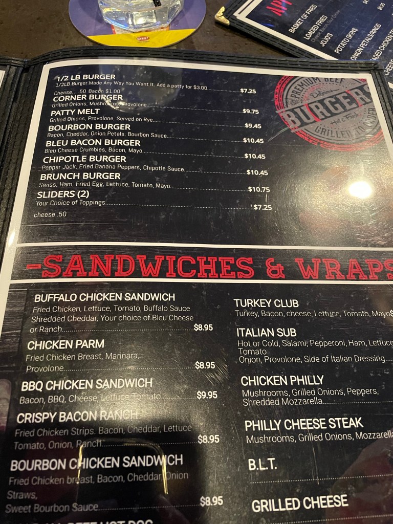 In case you’re wondering, “corner burger” is really just a fancy way to say “burger with grilled onions and mushrooms.” So there’s that.