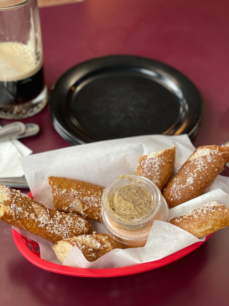 Shane was leaning toward a kielbasa app but I – not being a huge lover of it – overruled him with the pretzel sticks.