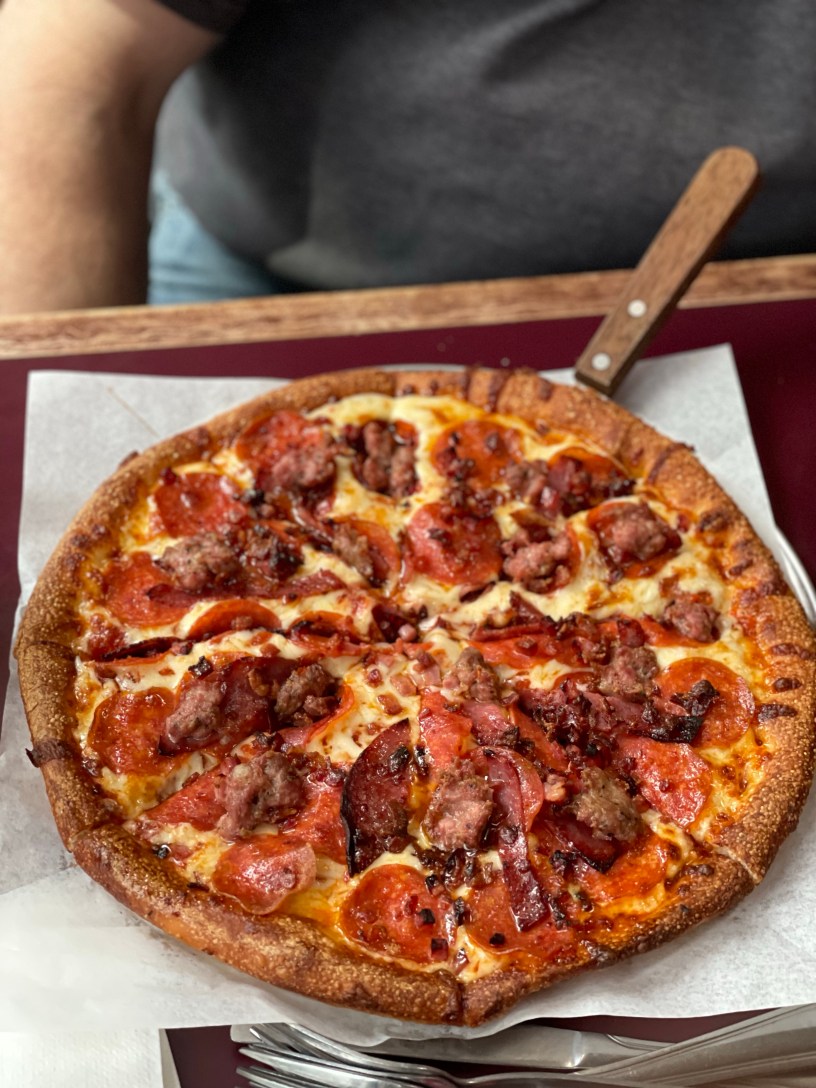 We’ve already discussed the feelings on the pizza. Ted took half of his home only because he wanted to be able to walk out and not be rolled down the steps Oompa Loompa style.