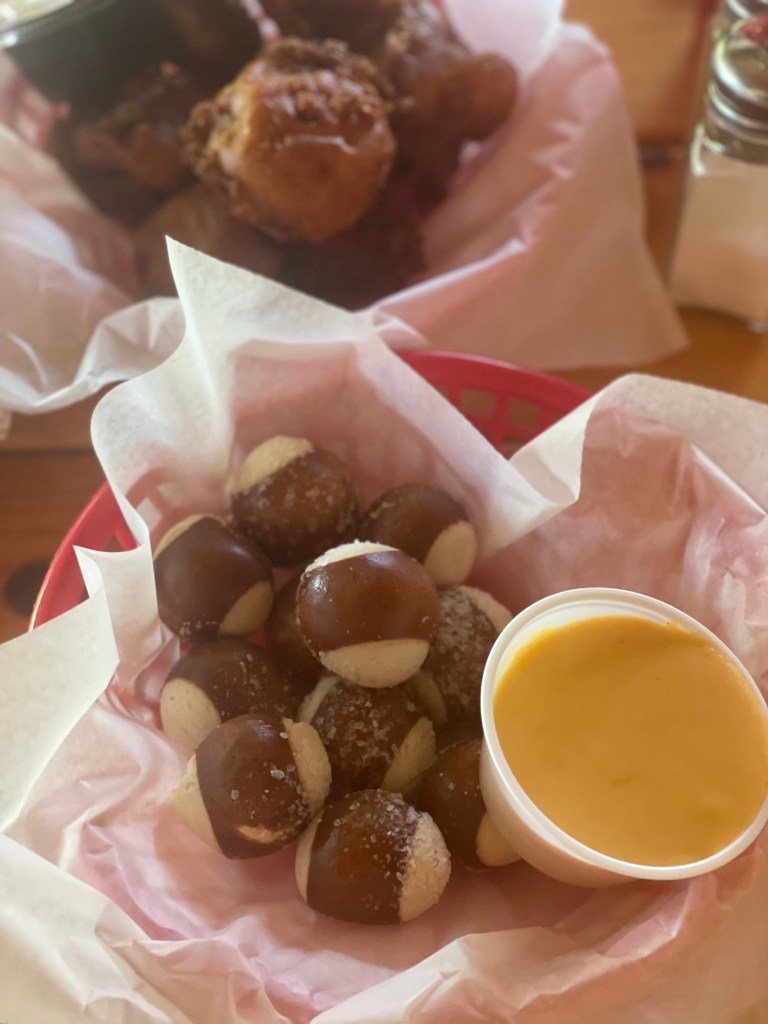 For apps Shane and I initially made a split decision for the beer battered mushrooms. But then I noticed they had pretzel bites so I asked to switch since we had also just had mushrooms last week.