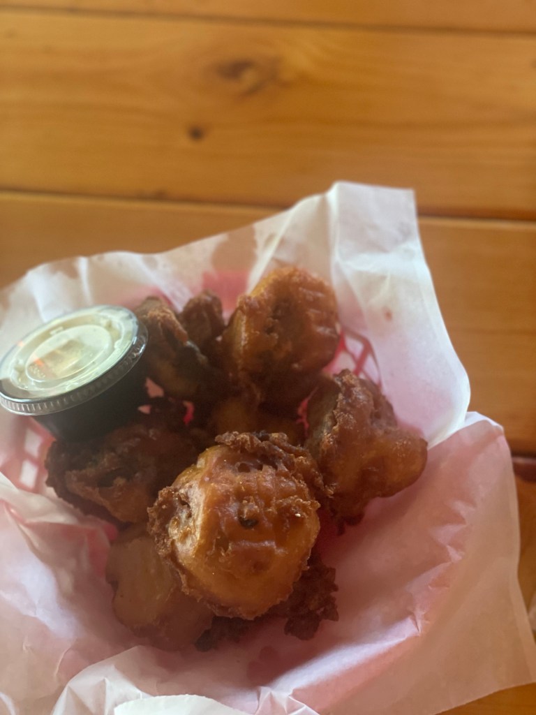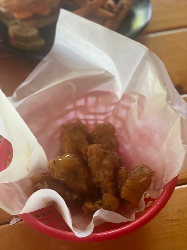 I wasn’t a fan of the fries. I specifically asked what the difference was between the broasted potatoes and the fries, and was told that the broasted were like little coins and fries were steak fries. Seems simple enough, no? But what they failed to mention was that the steak fries are then breaded before they’re put into the fryer. That’s an unpleasant surprise.