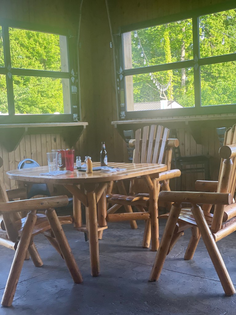 There were tables outside but they were less on a patio and more plopped in the grass next to a bocce pit. So because it was also 85 degrees without a cloud in the sky we opted for the sunroom option.