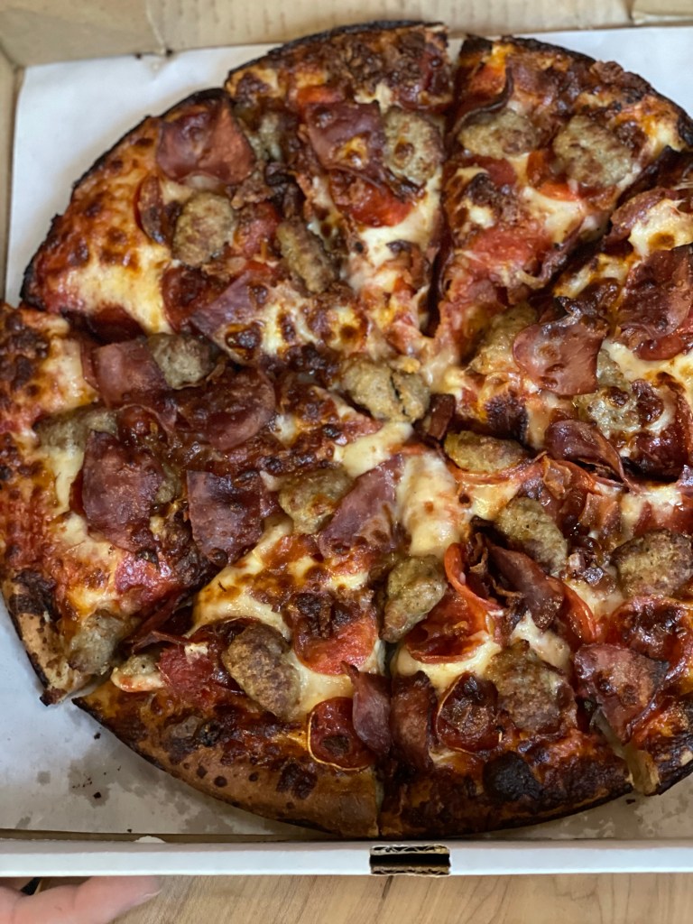 He thought ours was better than his. Like he put the meatza last out of the three options. Which is unusual with Ted and a meat based pizza unless it’s drowned in cheese (this wasn’t).