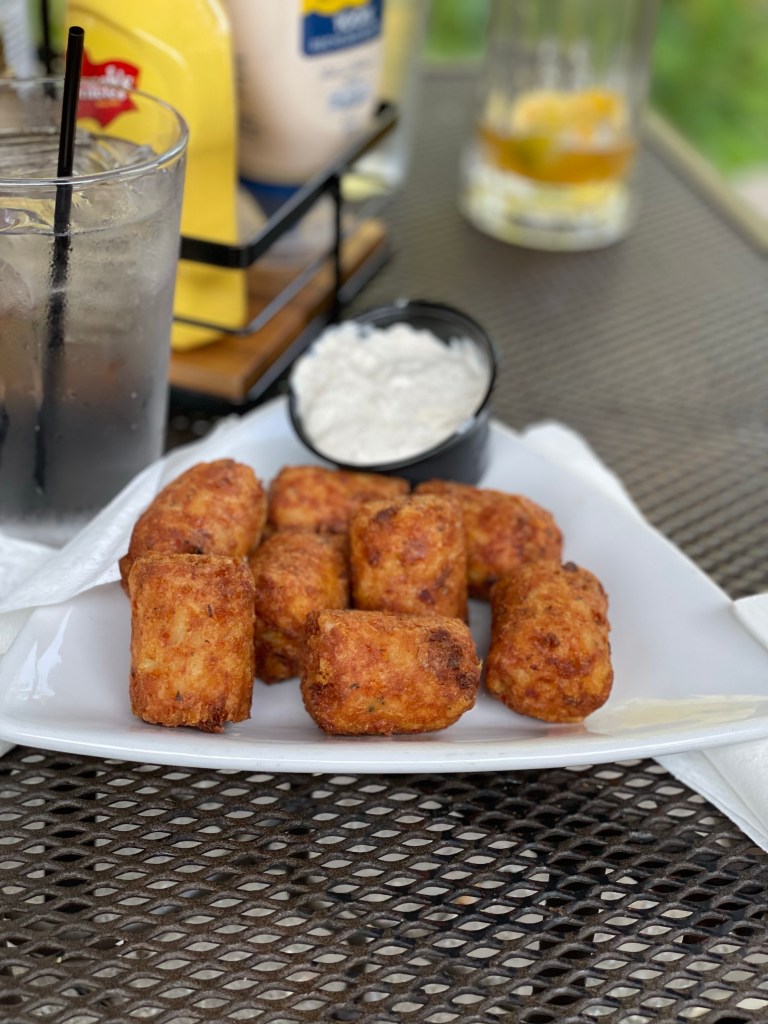 The best way to describe these are kind of like if you took a hash brown and mixed it with a potato skin, formed it in the shape of a little barrel and then fried it up. Also that photo doesn’t do the size of the justice. They truly are like mini barrels of potatoey goodness. And while we couldn’t quite figure out what the sauce was that came with them, we just know it was good.