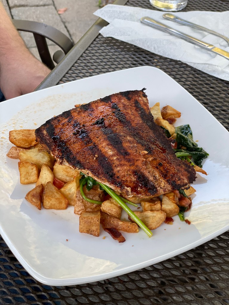 Overall the food here is several steps above bar food and the view on the back patio is worth the price of admission – or the wait for a table, as in our case tonight. They do have indoor seating, which includes a large wall of windows overlooking the back patio area, and I don’t believe there would’ve been any wait for that. But it seemed silly to waste a night like tonight staying indoors. Just clocking that option for an overly humid or rainy night.