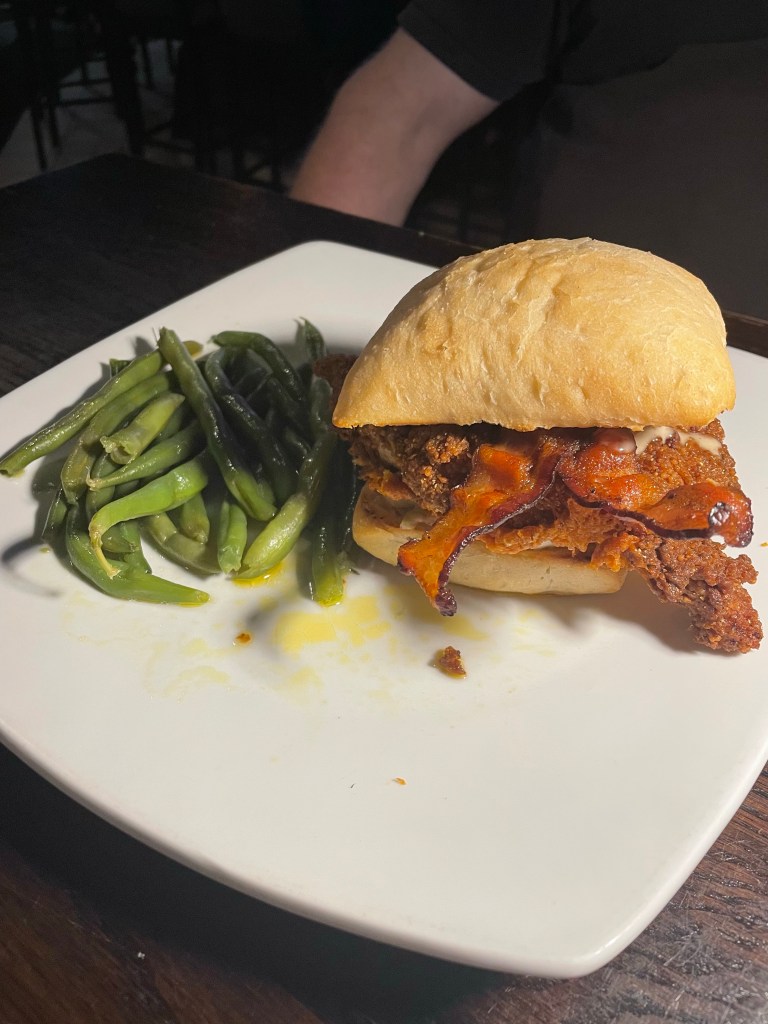 I joined Ted on the maple bacon chicken sandwich with green beans as a side bandwagon. Only mine had cheese.