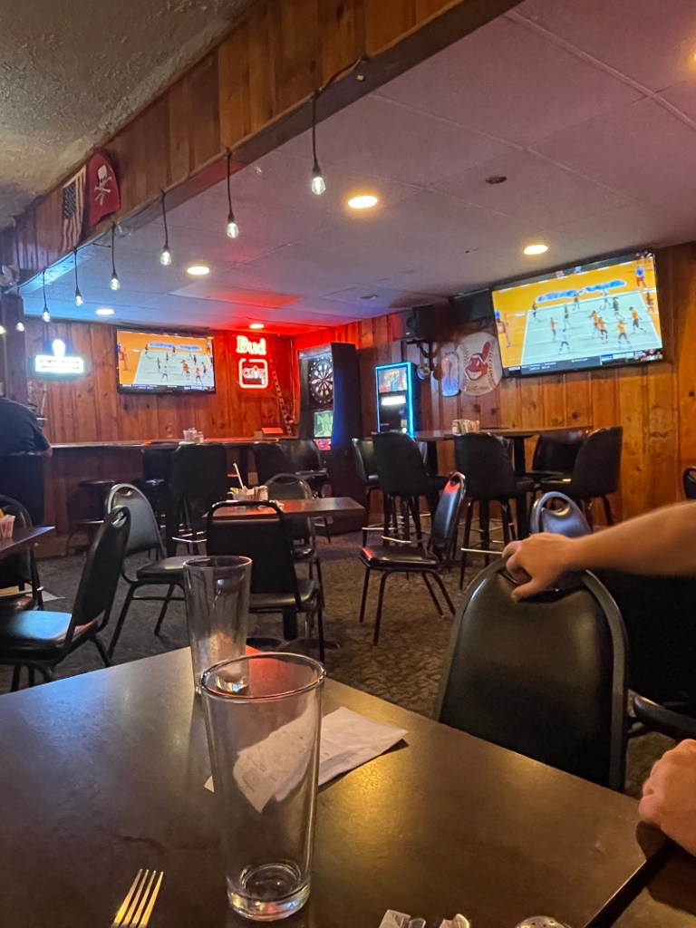 The inside of the Houston Pub is very much a whole “grandma’s house turned private club” vibe. There’s wood paneling on the walls. And a space which probably was a corner fireplace in another life. And carpeted floors. Because that’s always a good design choice in an area where people are consuming alcohol, no? The bar area looked like it truthfully could be someone’s extended kitchen and they just invited us all to stop in for a party.
