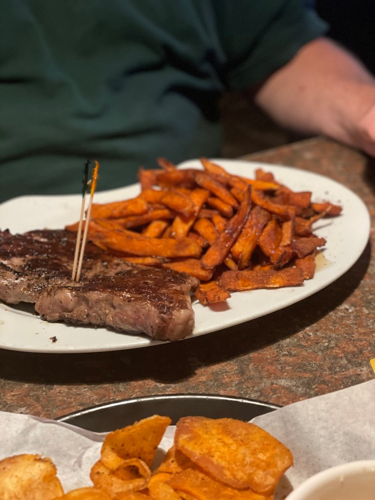 And the guys did debate ordering burgers. But they finally decided they couldn’t justify paying $15-ish for a burger when they could get a 12 oz steak for the same price.