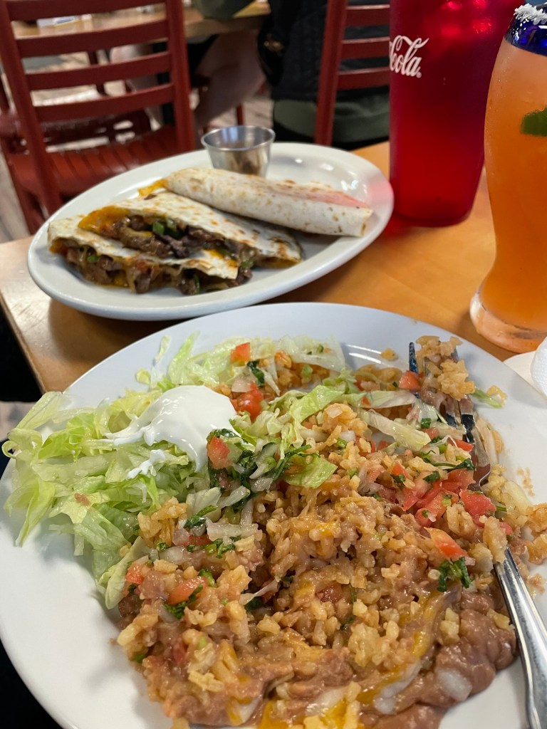 Shane got his usual, a fajita quesadilla. It comes with rice and beans.