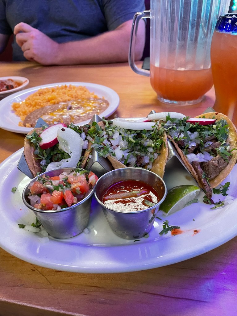 I got the steak street tacos with rice and beans. I liked them, they were very good. A little heavy on the onion, especially in combination with the fresh salsa, but not overwhelming.