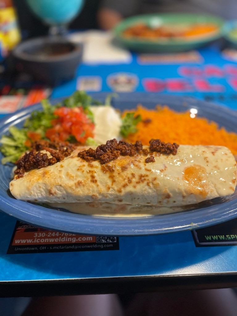 Since we had a theme going, I decided to order the spicy steak burrito from the specials menu. It comes with a topper of queso, chorizo and a spicy sauce. I enjoyed it.