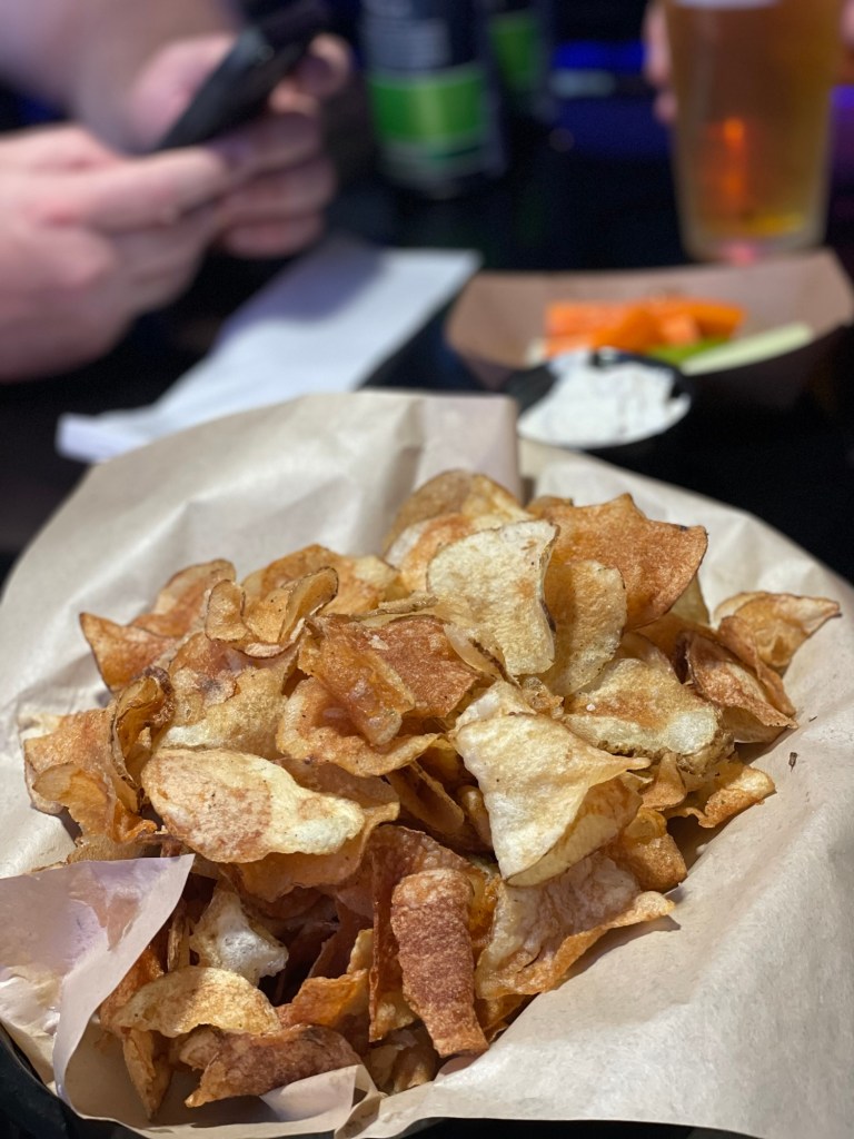 Perhaps in an attempt to balance out the starch overload, the chips and dip app also comes with carrots and celery. Like wings? Odd. But I guess this is the closest I’m getting to a salad tonight, so we’ll call that a win I guess.