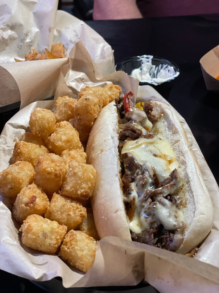 And I was not disappointed in the meal here. The Philly arrived steaming hot and was a fairly large portion, enough that I ate it all but was definitely full afterwards. The hoagie bun wasn’t too much bread and the taste was great. The tots were just crispy enough without being overdone. *chef’s kiss*
