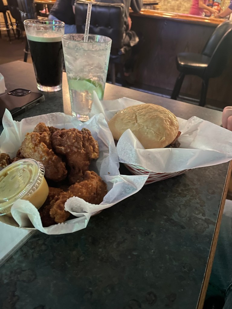 They didn’t have sauces listed on the menu, but upon asking we learned it’s only really the basics – bbq, honey mustard, etc. He asked if that list might include a garlic parm, and was pleasantly surprised to hear a yes.